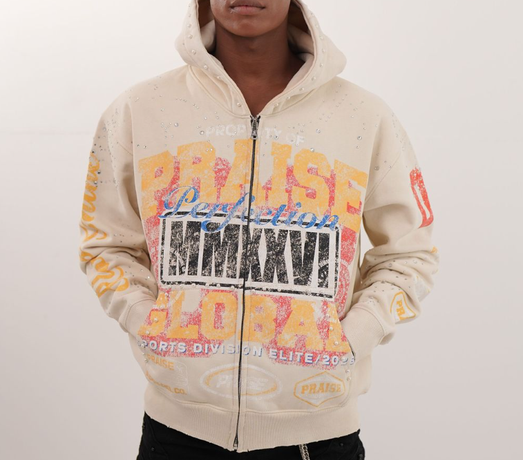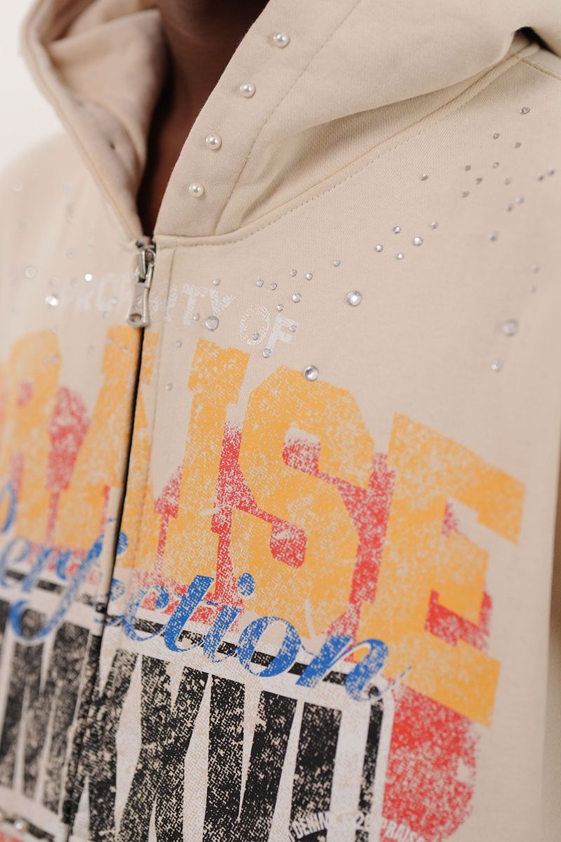 ELITE PREMIUM DENIM MEN RHINETONE PEARLS ZIP UP