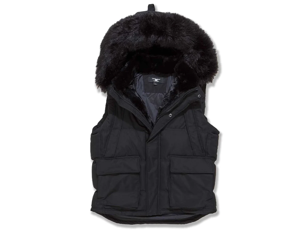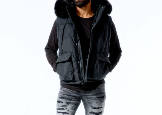 BRIAN BROTHERS MEN BLACK FUR PUFFER VEST