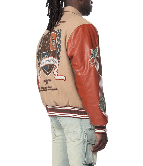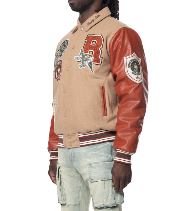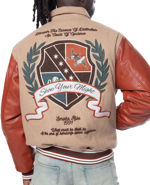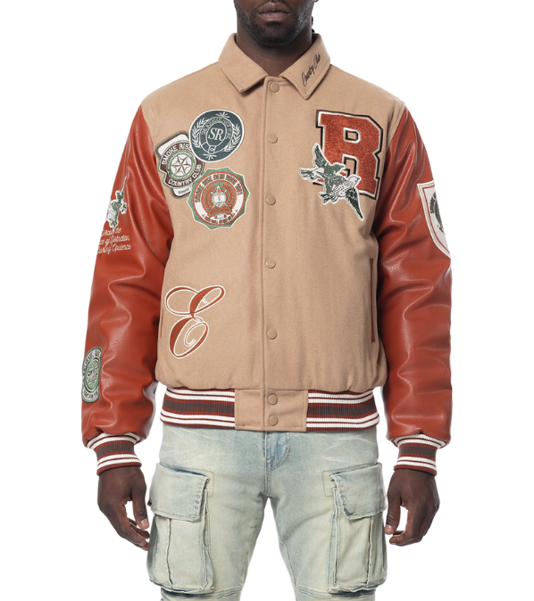 SMOKE RISE MEN STUDDED PATCH VARSITY JACKET