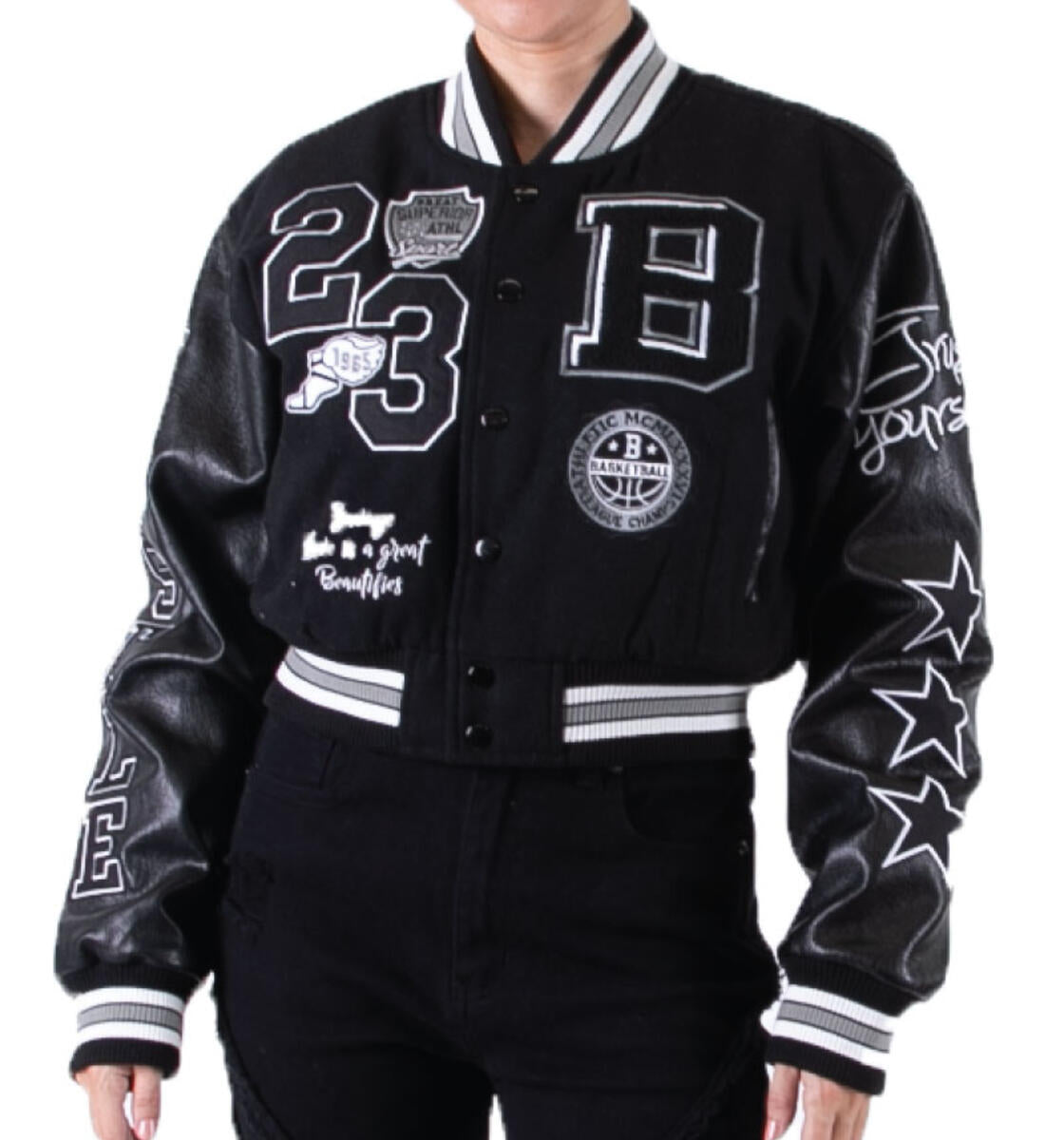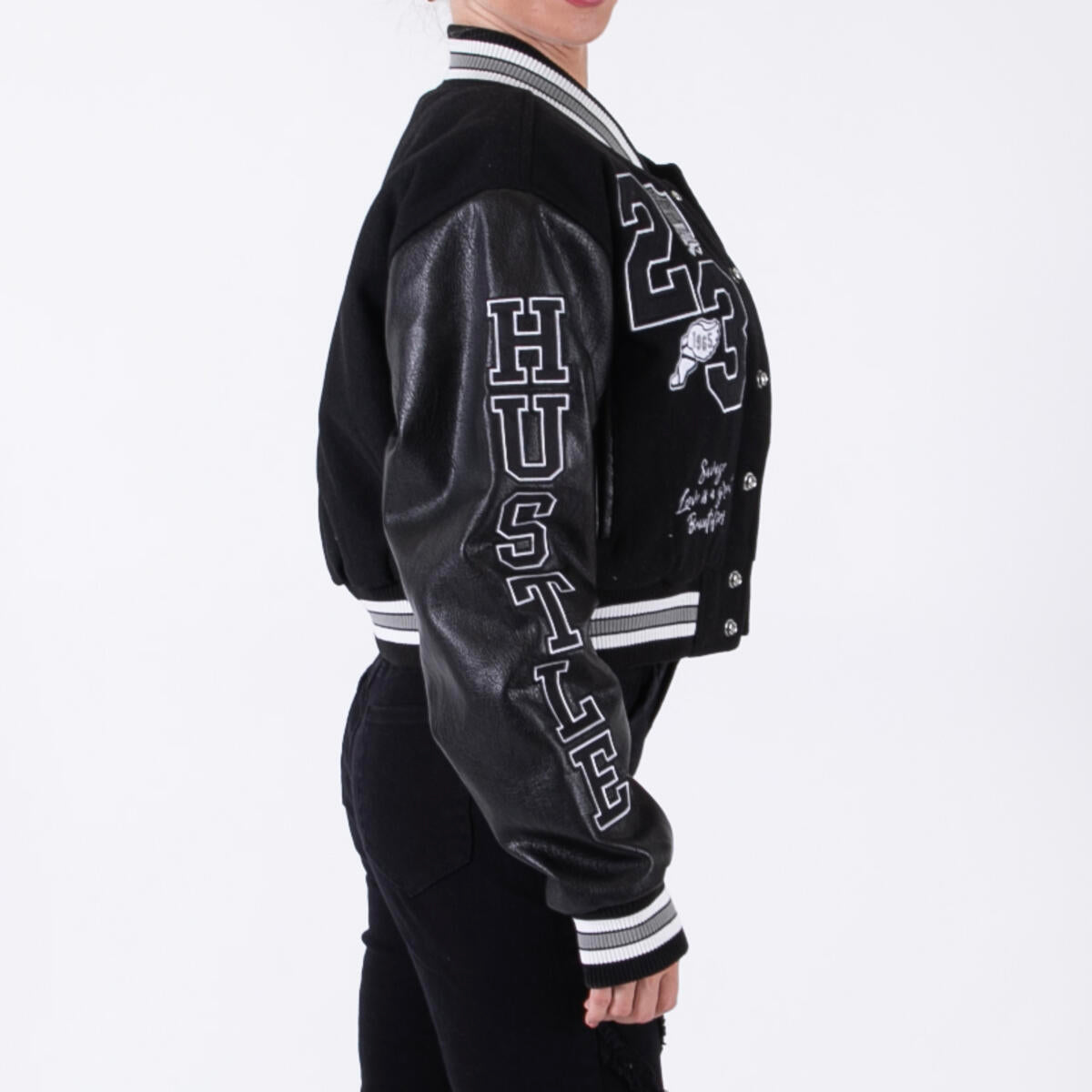 RED FOX WOMENS WOOL VARSITY CROP JACKET WITH PATCH