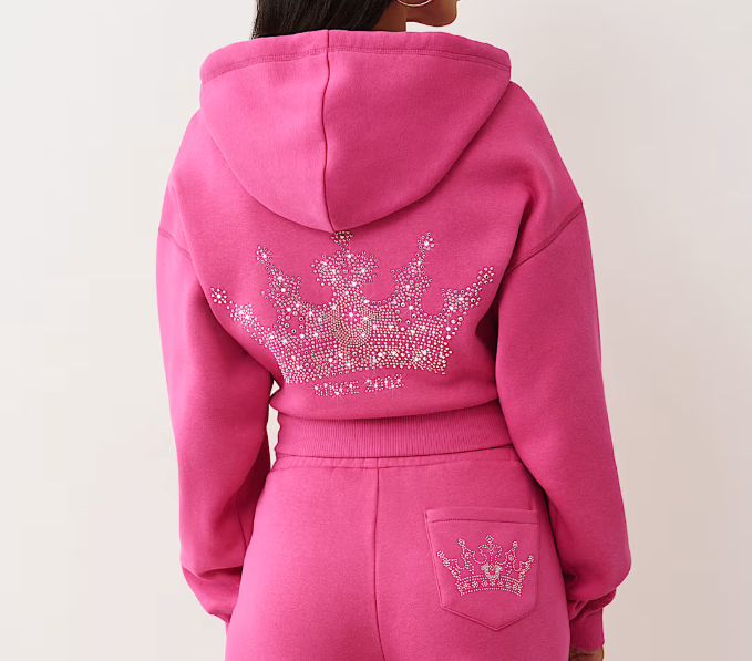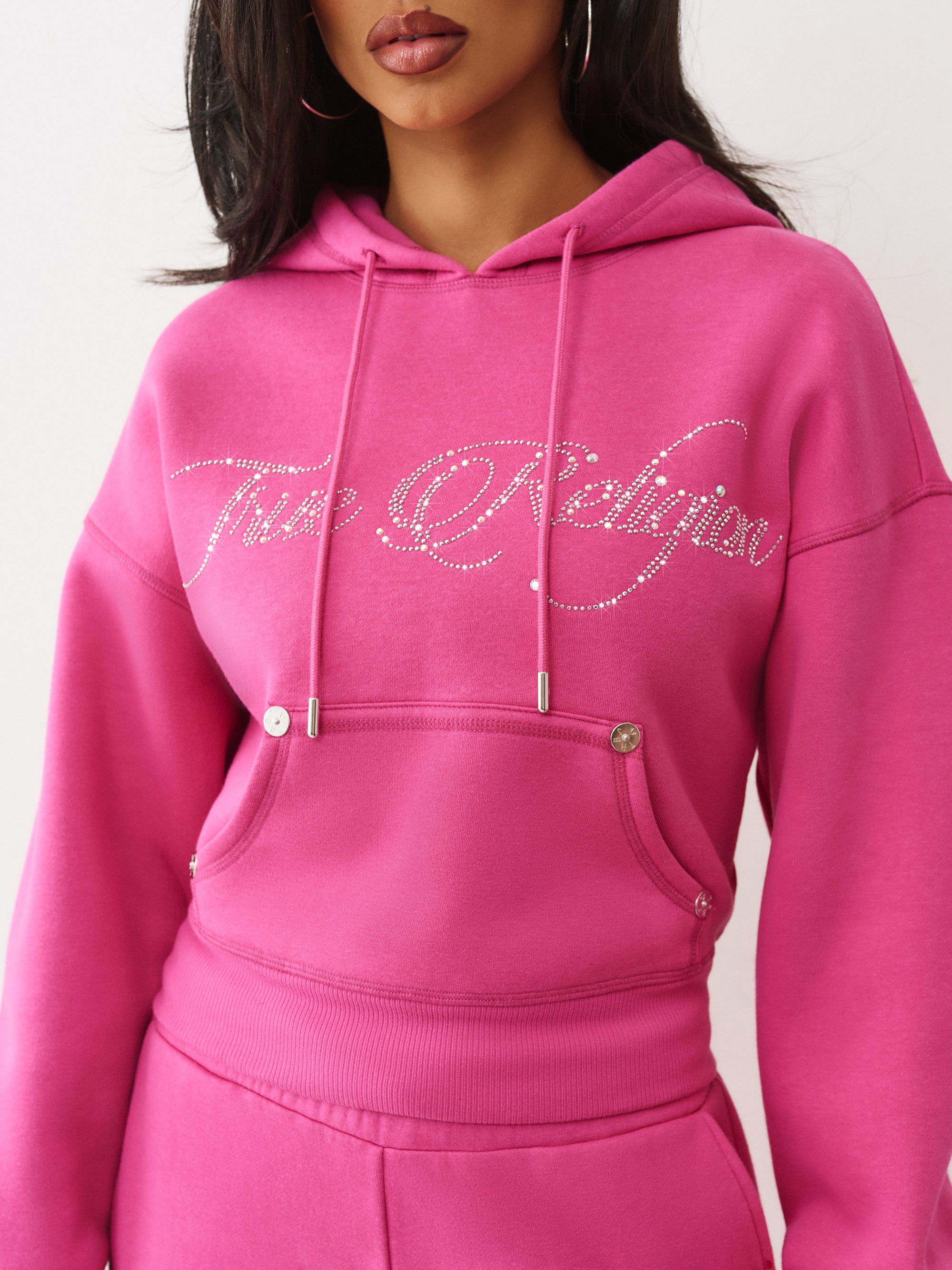 TRUE RELIGION WOMEN CRYSTAL CROPPED RELAXED HOODIE
